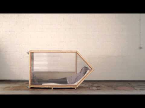 Il piccolo hotel portatile è fatto in legno impermeabile e plexiglass, con una finestra
